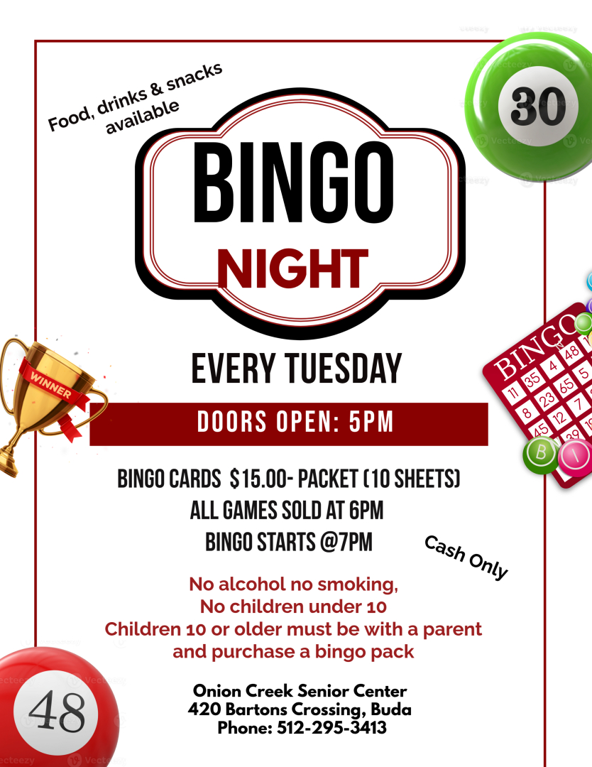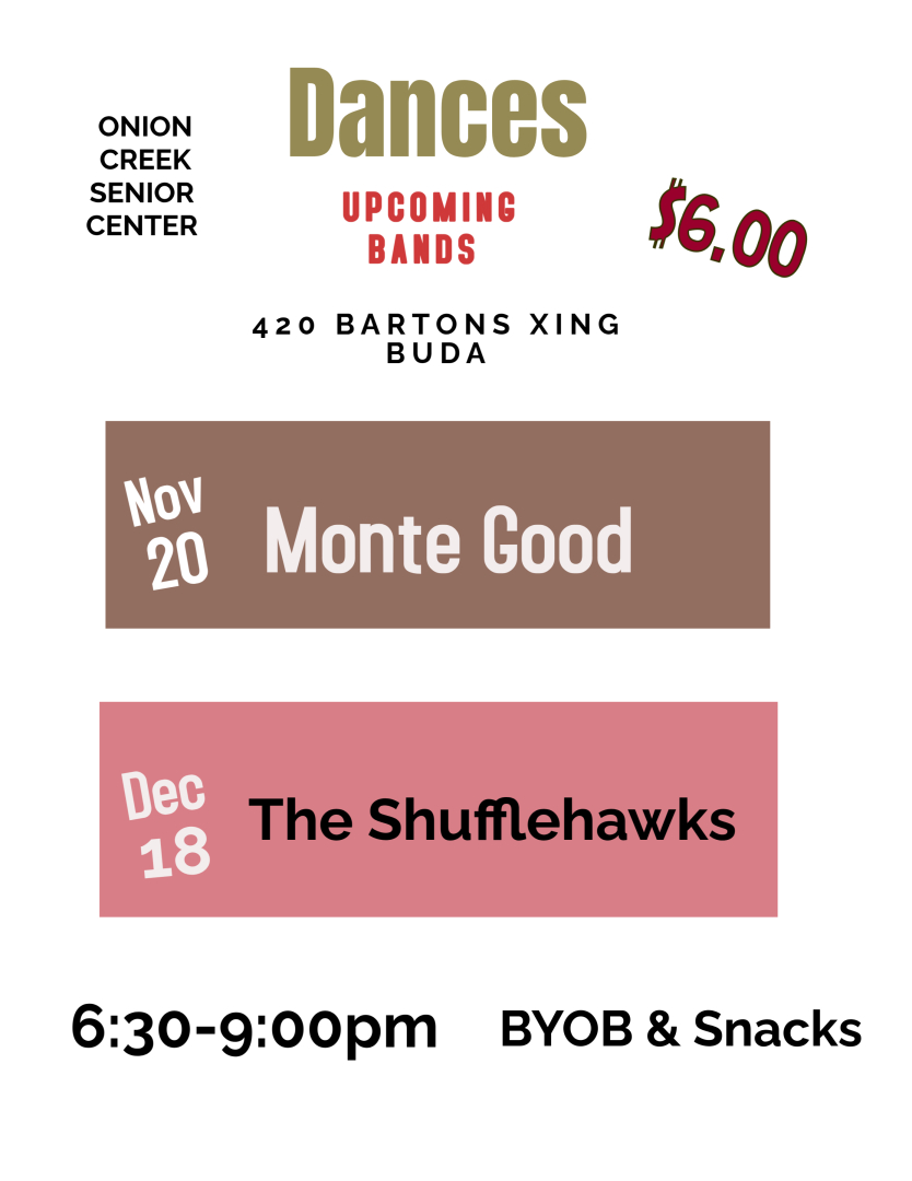 The Onion Creek Senior Center (OCSC) is a private 501(c)(3) organization, independent of any government entity. We have been a viable part of the Buda, Texas community since 1984.