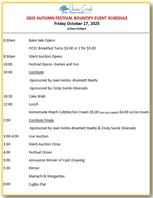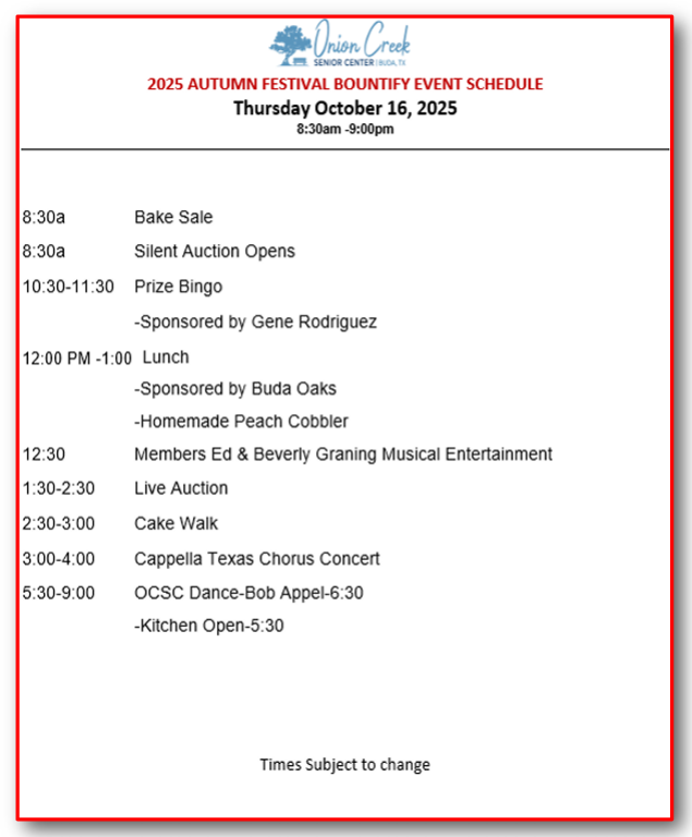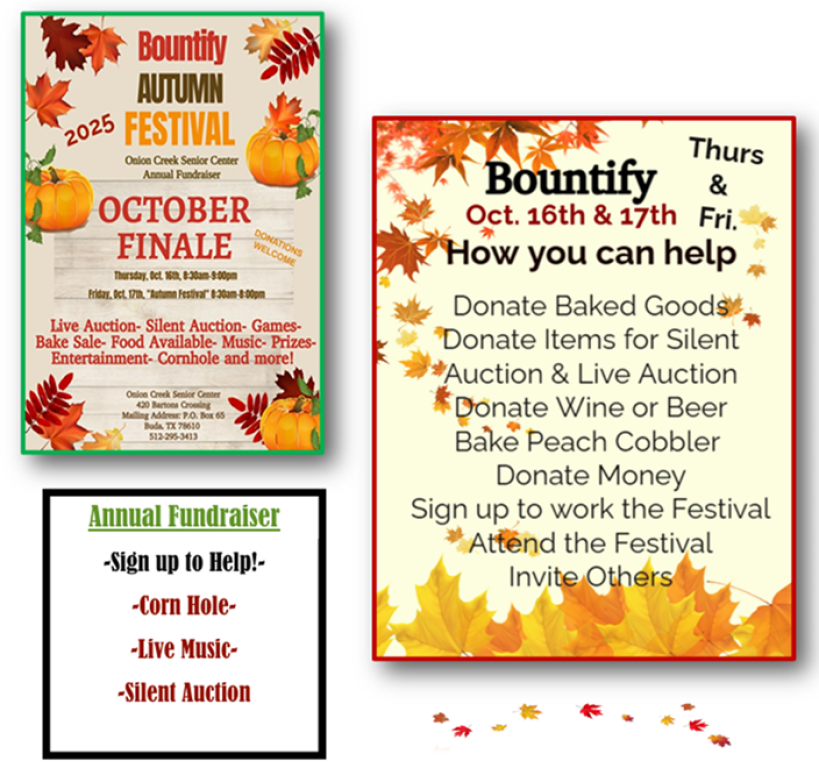 OCSC's biggest fundraiser of the year is here!!! Bountify Autumn Fall Festival! We will have activities throughout September and October months; with our main events occuring on, Thursday, October 16th, and Friday, October 17th: Bountify Festival